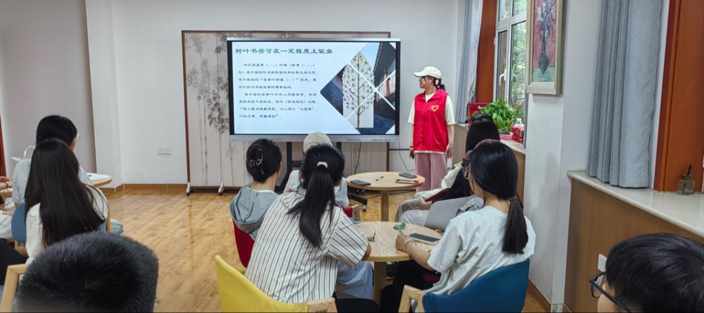 活动中,学院青志部刘雪化身“科学导师”,从植物分类学、生理学等专业视角,讲解不同树叶的生物学特性与美学价值,分享科学处理叶片的方法,并结合植物形态学指导书签设计。同学们认真聆听,汲取知识。动手实践时,大家精心挑选树叶,运用刚学到的技巧,经过压制、修剪、装饰等一系列工序,将叶片转化为兼具生物学特征与美感的书签。有的书签镶嵌着绚丽的干花,有的点缀着可爱的小树叶,每一枚书签都承载着创作者的巧思与热情。