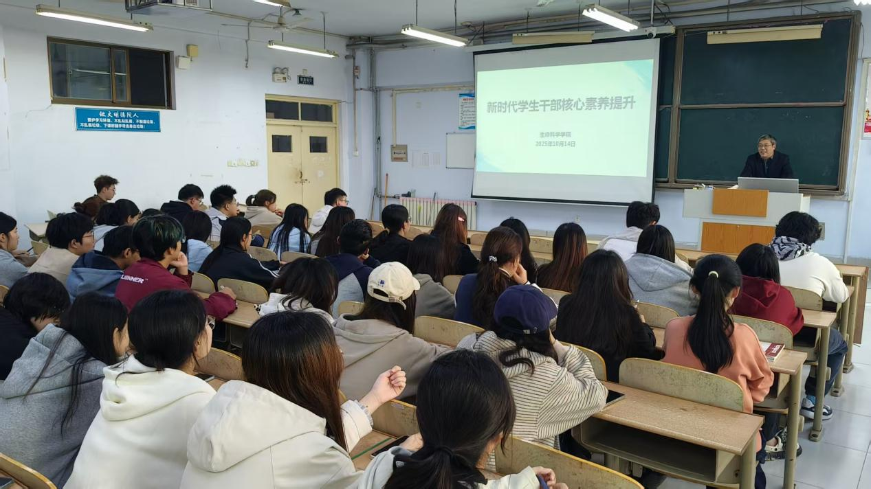 10月14日晚,ok138cn太阳集团古天乐在求实楼0111教室开展“新时代学生干部核心素养提升”思政课,学院党委书记赵庆福为全体学生会成员上了一堂既有高度又有温度的“成长公开课”。