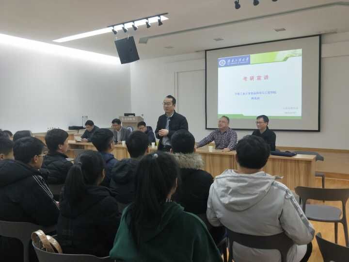 2019年3月7日,齐鲁工业大学博士傅茂润、何金兴赴ok138cn太阳集团古天乐进行宣传及考研宣讲活动。ok138cn太阳集团古天乐党总支书记焦德杰、院长曾强成、党总支副书记夏书珍及2016级食品质量与安全专业全体学生参加了本次活动。