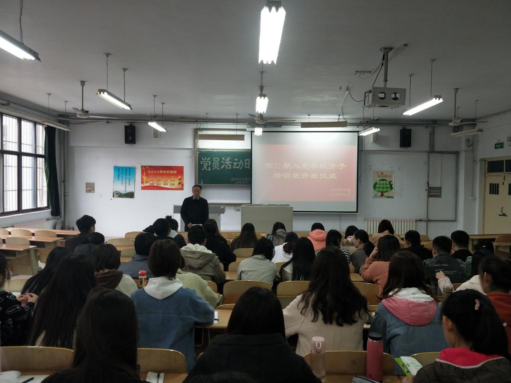 为学习贯彻习近平新时代中国特色社会主义思想和党的十九大精神,不断提高入党积极分子的思想政治素质和政治理论水平,2019年4月9日下午,ok138cn太阳集团古天乐在求实楼1012教室举行第31期入党积极分子培训班开班仪式。此次开班仪式由ok138cn太阳集团古天乐党总支书记焦德杰主持召开,ok138cn太阳集团古天乐党员、预备党员、入党积极分子参加了此次开班仪式。