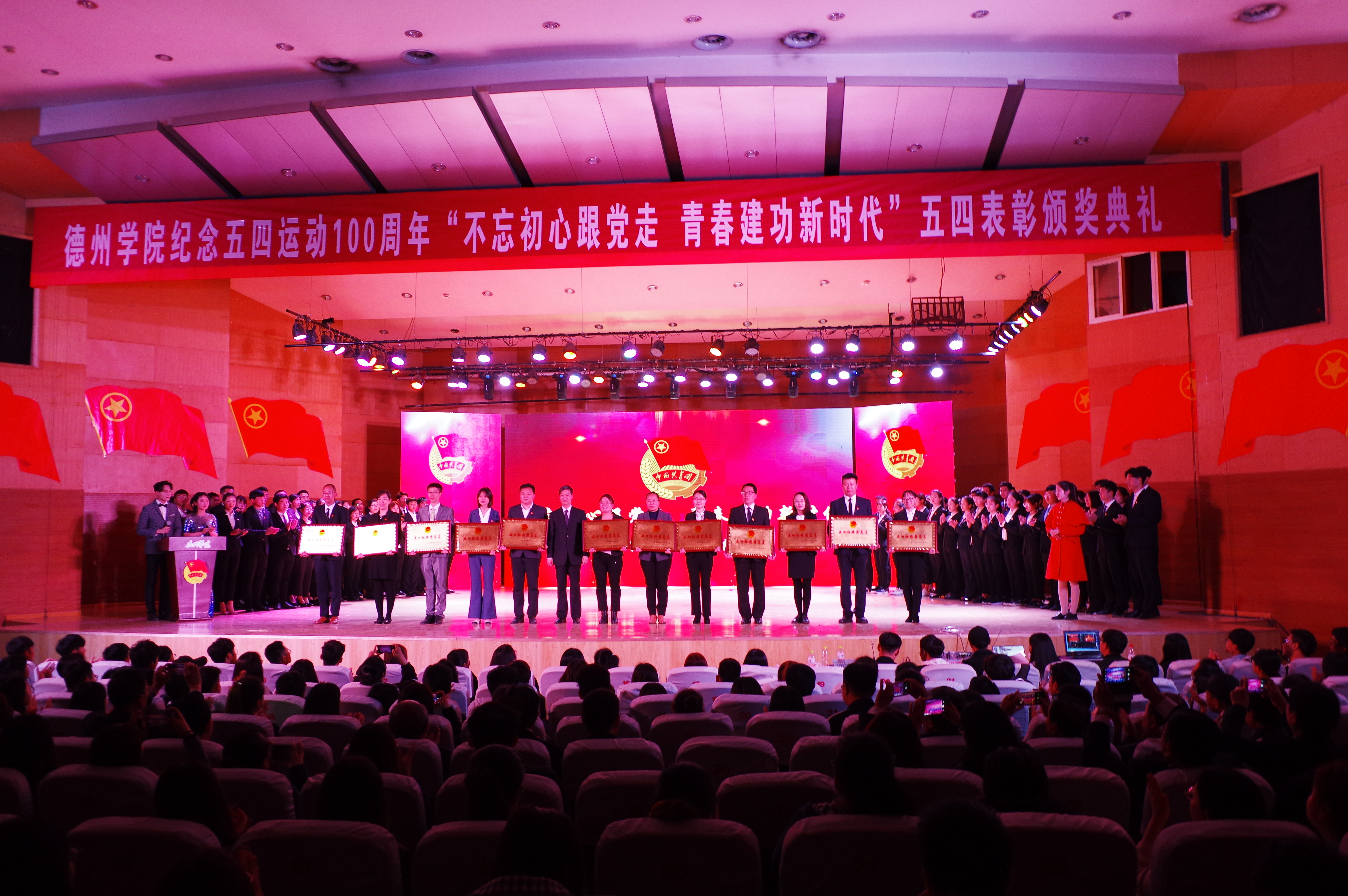 青年兴则国兴,青年强则国强;五四,青年的华章,青年的盛典。为纪念五四运动100周年,在广大青年中弘扬“五四”精神,深入学习贯彻习近平新时代中国特色社会主义思想和党的十九大精神,2019年4月28日,ok138cn太阳集团529在南校音乐厅举行纪念五四运动100周年暨2019年五四表彰颁奖典礼。
