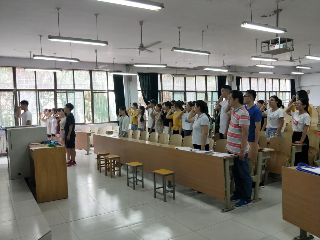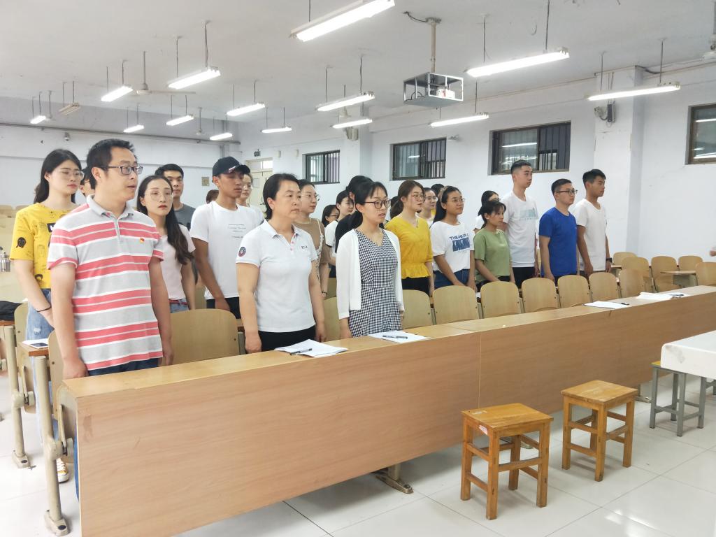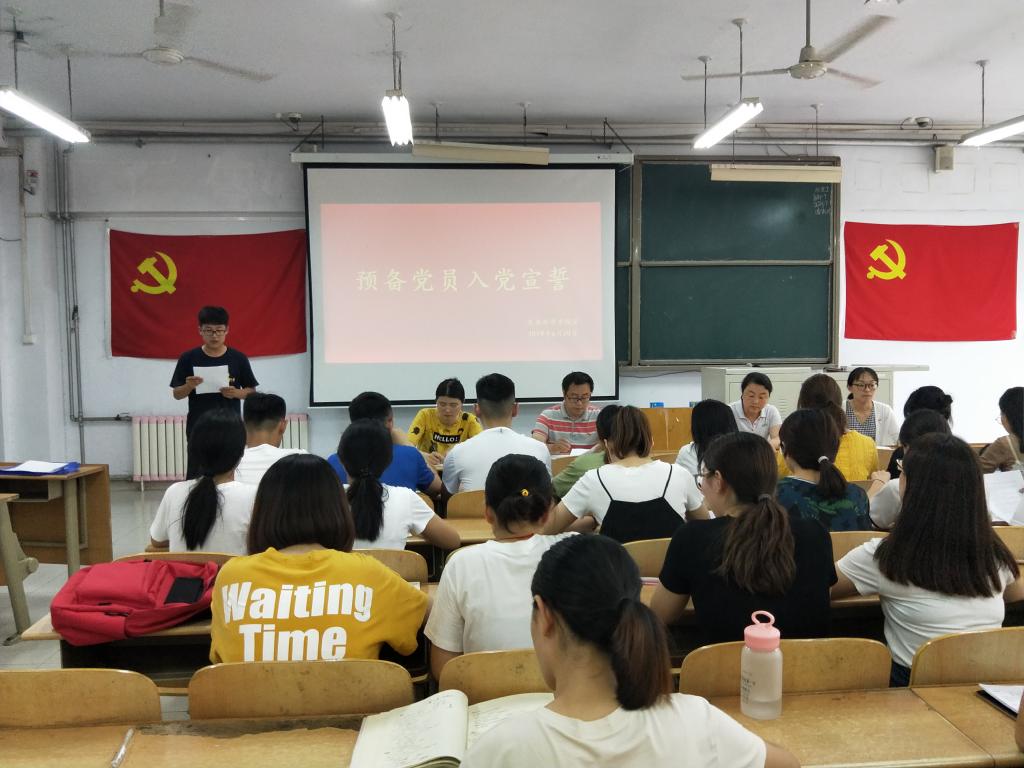 2019年6月20日下午,ok138cn太阳集团古天乐于求实楼1011教室召开预备党员入党宣誓大会。ok138cn太阳集团古天乐党总支副书记夏书珍、辅导员周向军、郑金召参加了此次大会。2019年上半年发展的预备党员参加了此次会议。此次宣誓仪式由辅导员郑金召主持。