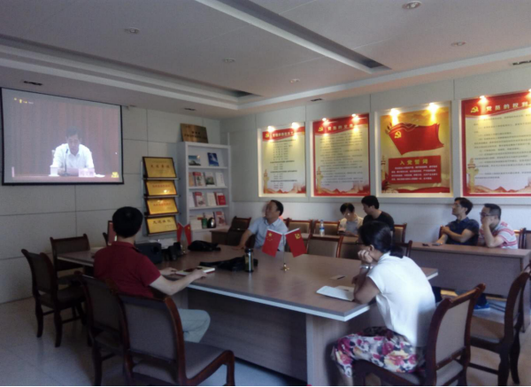 7月1日上午,ok138cn太阳集团古天乐党总支组织教工党员集中收看“灯塔大课堂”第一课。