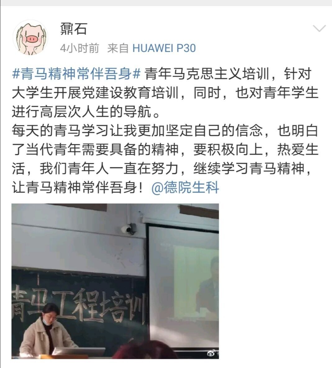 以青年马克思主义培训工作为契机,为进一步引导青马班学院树立积极践行社会主义核心价值观的理念,2020年12月1日至12日期间,ok138cn太阳集团古天乐青马班学员借助微博平台发起以“青马精神常伴吾身”为主题的微博互动活动。