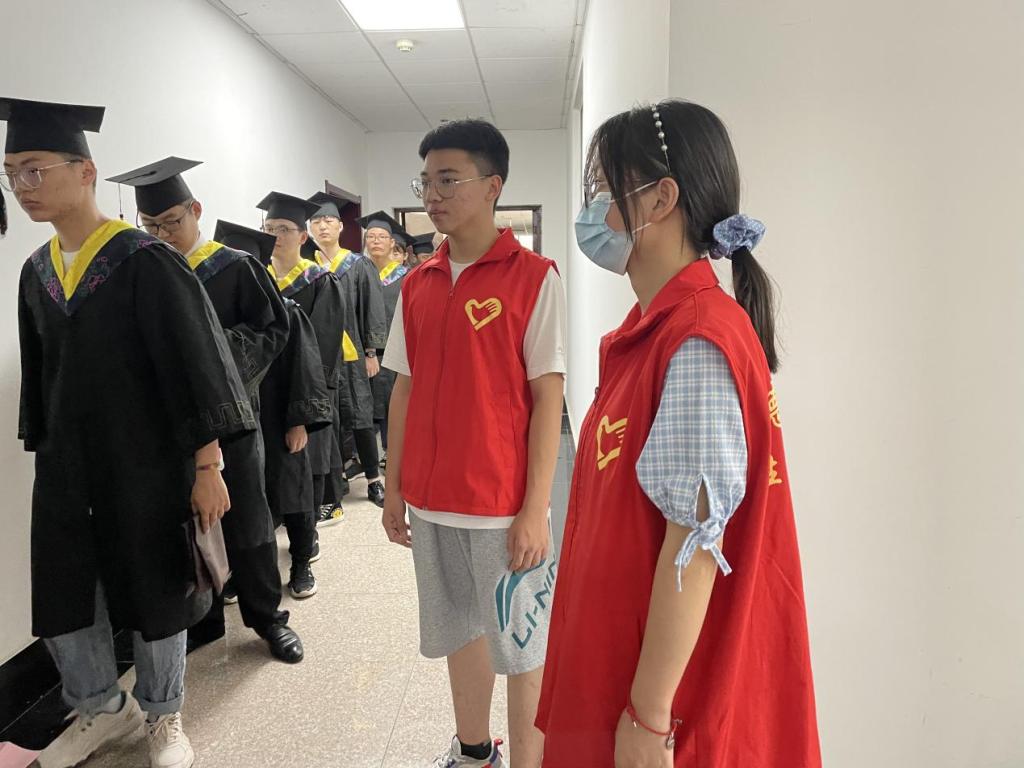 6月23日,为了确保毕业典礼顺利开展,让毕业生在毕业之际感受到来自学校的温暖,我院志愿者在厚德楼积极参加“授予仪式送服务,承载情谊办实事”毕业典礼志愿服务活动。