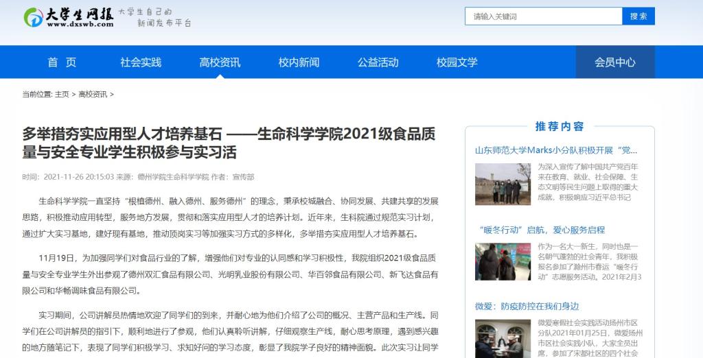 11月19日,为加强同学们对食品行业的了解,增强他们对专业的认同感和学习积极性,我院组织2021级食品质量与安全专业学生外出参观了德州双汇食品有限公司、光明乳业股份有限公司、华百邻食品有限公司、新飞达食品有限公司和华畅调味食品有限公司。