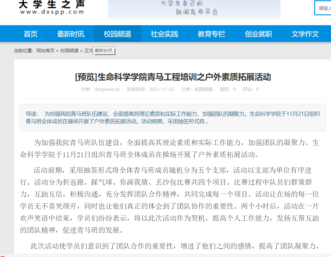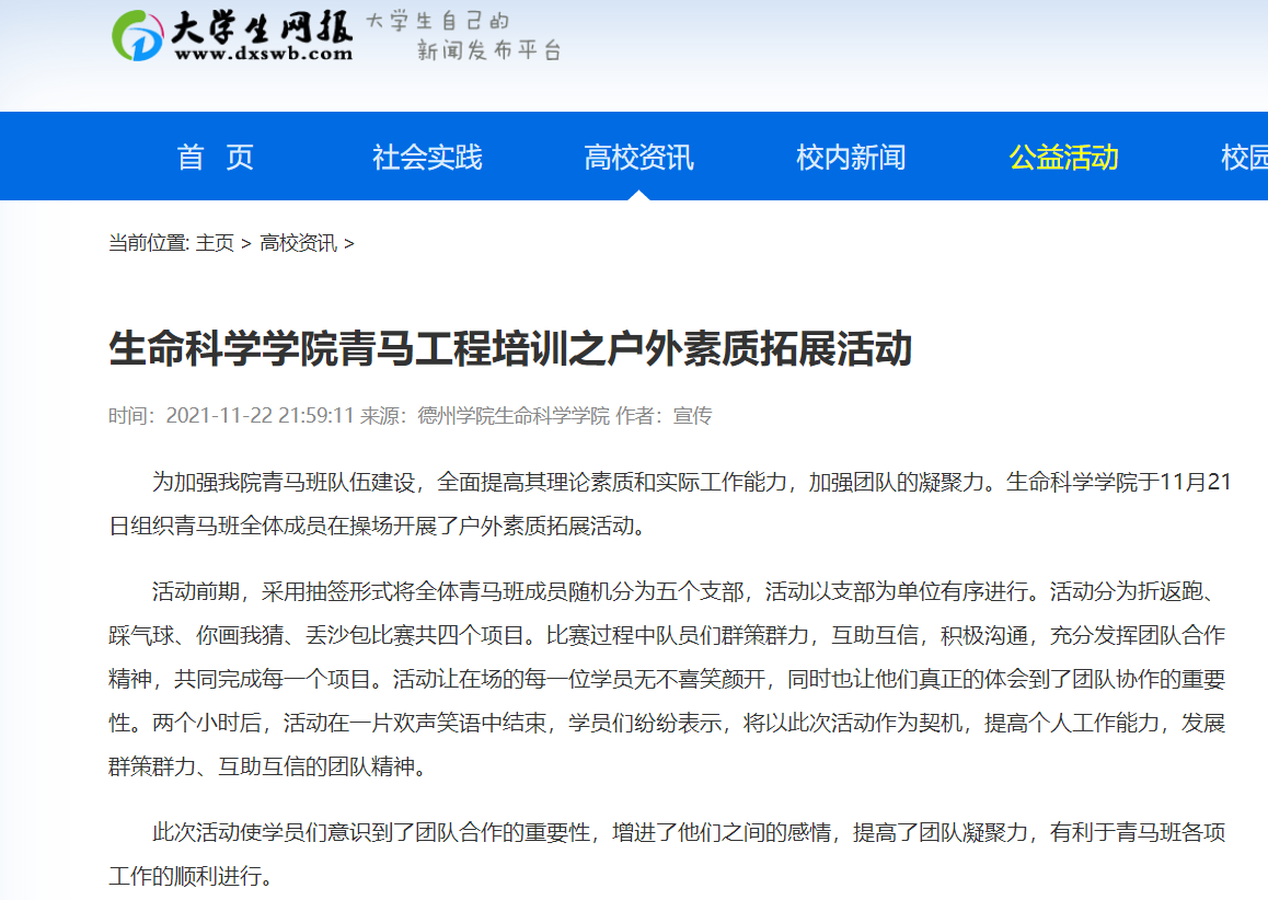 为加强我院青马班队伍建设,全面提高其理论素质和实际工作能力,加强团队的凝聚力。ok138cn太阳集团古天乐于11月21日组织青马班全体成员在操场开展了户外素质拓展活动。