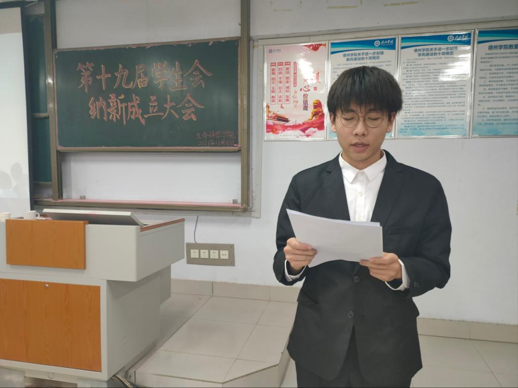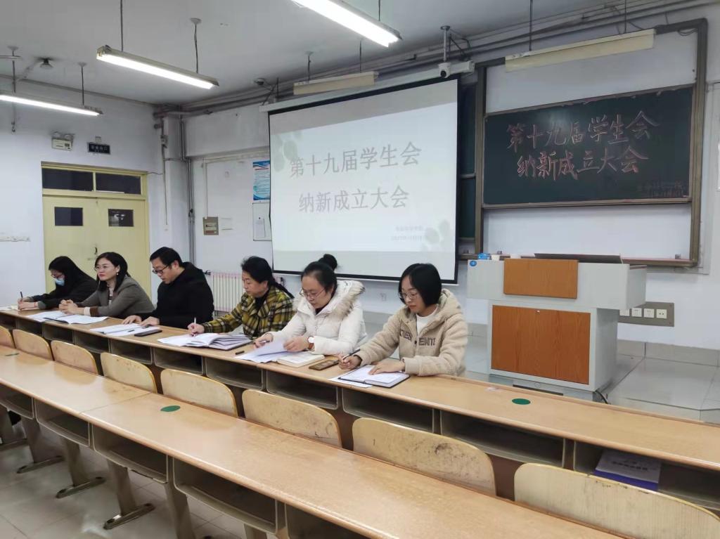 11月16日,ok138cn太阳集团古天乐于求实楼0111教室召开第十九届学生会纳新成立大会。院党委副书记夏书珍、团总支书记王艳洁、辅导员周向军、孙珍辉、郑金召老师、班主任刘璐老师出席此次会议,学生会全体成员参加此次成立大会。