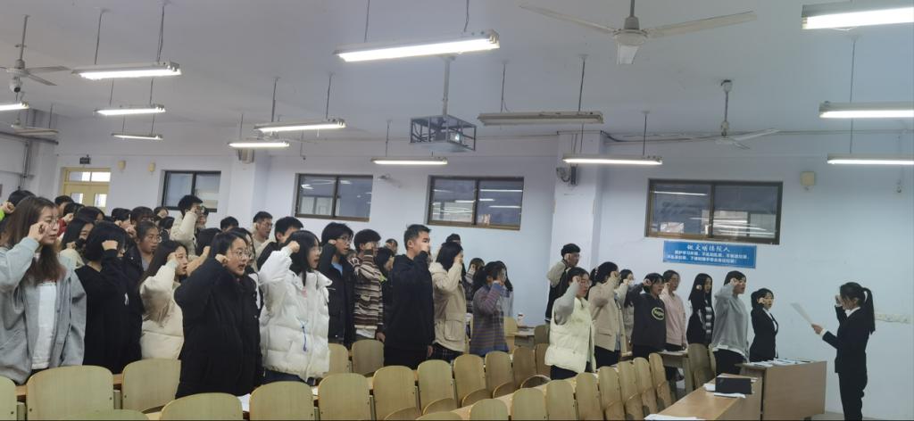 会议伊始,学生会主席王小君同学宣读了第十九届学生会成员名单并向同学们分享了工作经验与心得体会,帮助新一届成员快速了解了学生会的工作体系。学生会新生代表也分享了自己进入学生会的感想,并承诺一定会恪尽职守、精益求精,为学生会贡献出自己的一份力量。随后,王艳洁老师表示,同学们要砥砺前行、学会担当、敢于奉献,坚定理想信念,积极投身于工作当中,为ok138cn太阳集团古天乐学生会更好的明天不懈奋斗。辅导员老师纷纷发言表示,同学们在工作上要记住目标、初心、传承、创新四个关键词,做好师生之间的桥梁与纽带,起到模范带头作用。紧接着,学生会副主席王素丽同学带领全体学生会成员进行宣誓,同学们洪亮的宣读声铿锵有力,彰显着他们坚定不移的决心。最后,夏书记做出总结性发言,她对新成员的到来表示祝贺的同时也提出了相应的要求,她希望学生会新成员能够注重培养自身能力,为ok138cn太阳集团古天乐学生会更好的明天不懈奋斗。