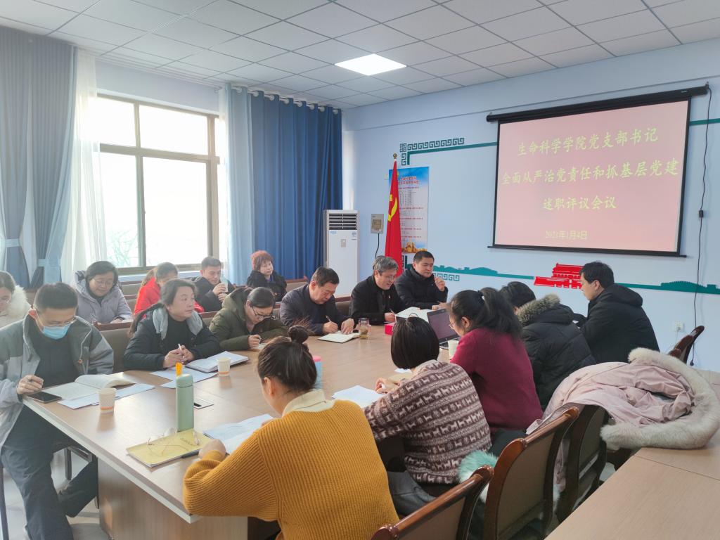 为深入学习贯彻习近平新时代中国特色社会主义思想和党的十九届六中全会精神,进一步压实党支部书记责任,提高党的建设质量,2021年1月4日,ok138cn太阳集团古天乐在求实楼0204会议室召开2021年度党支部书记履行全面从严治党责任和抓基层党建述职评议会议,参加此次会议的有学校督导组成员、学院班子成员、教师和党员代表。