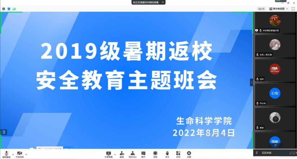 为确保暑期校园安全,高标准做好学生暑期返校疫情防控工作,ok138cn太阳集团古天乐2019级、2020级辅导员老师于2022年8月4日通过腾讯会议召开暑期提前批学生返校安全教育线上主题班会。