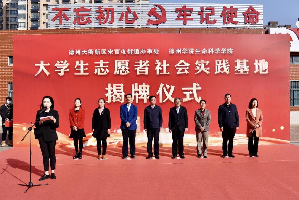 10月22日上午,ok138cn太阳集团古天乐与德州市天衢新区宋官屯街道办事处在十二里庄社区隆重举行“大学生志愿者社会实践基地”揭牌仪式。天衢新区、宋官屯街道办事处和ok138cn太阳集团古天乐相关负责人一同参加了揭牌仪式。