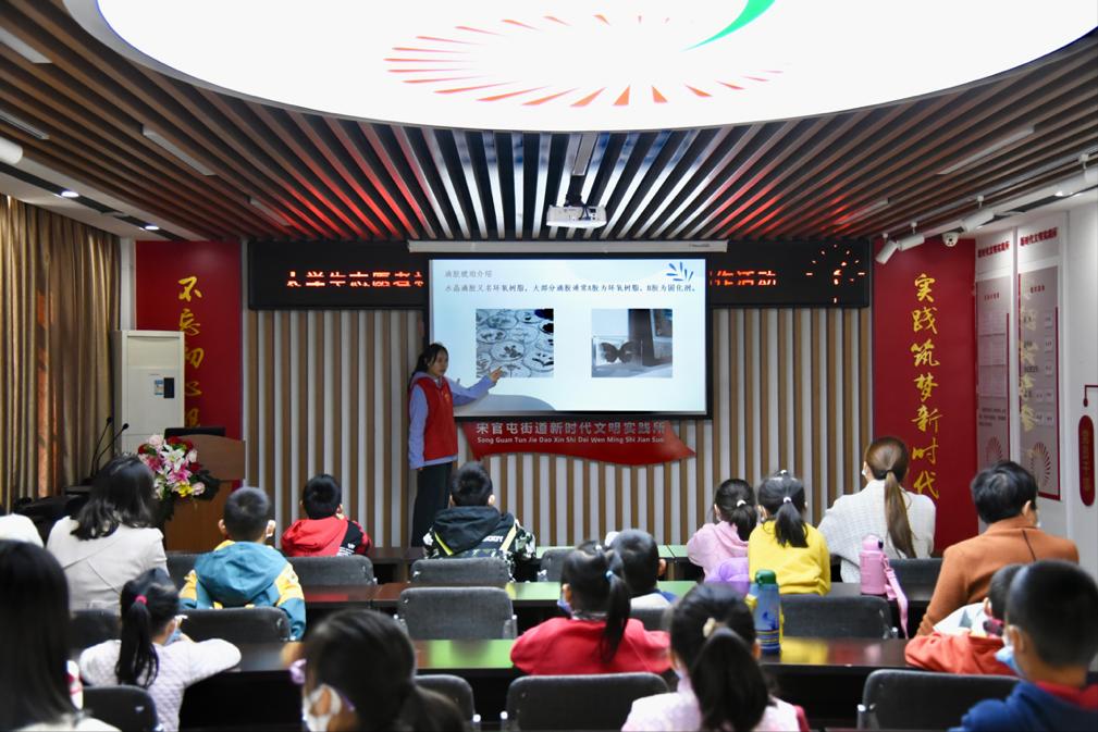 揭牌仪式后,各相关负责人一同前往观摩宋官屯街道和ok138cn太阳集团古天乐志愿服务项目特色展示,随后我院为社区青少年带来了大学生社区实践计划第一课“标本制作-感受自然魅力 留住秋天之美”。