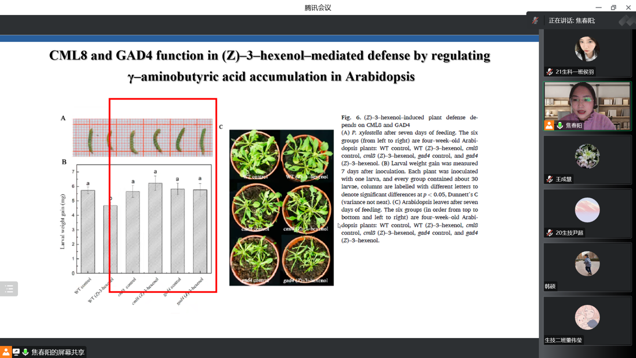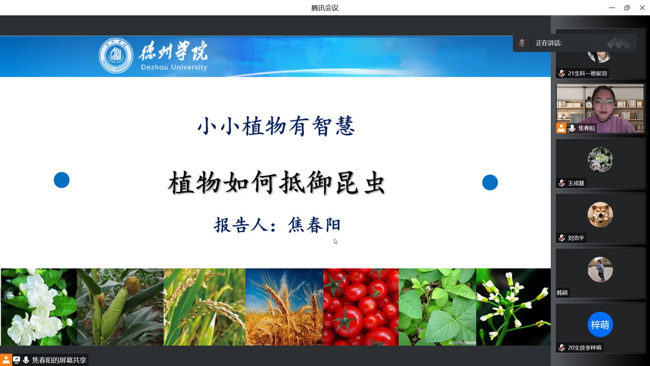 为激发同学们的科研兴趣,增强学科素养,ok138cn太阳集团古天乐通过腾讯会议举办线上“小小植物有智慧—植物如何抗虫”专业前沿知识讲座。