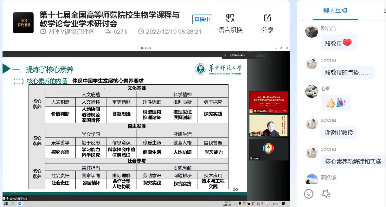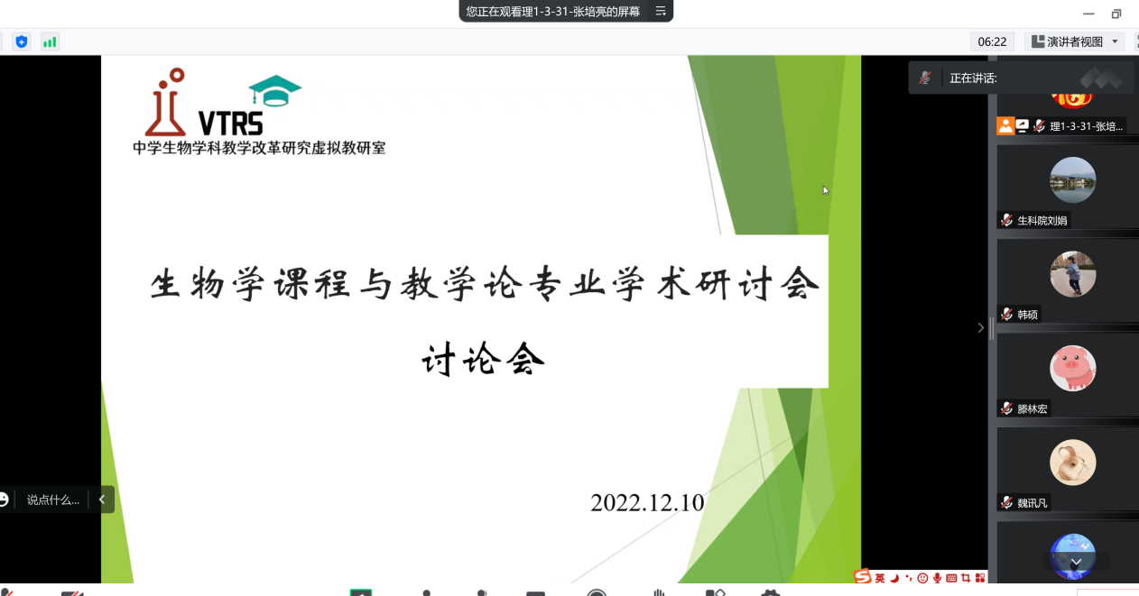 12月10日,ok138cn太阳集团古天乐组织教师参加第十七届全国高等师范院校生物学课程与教学论专业学术研讨会。本次研讨会由中国教育学会生物学教学专业委员会主办,湖南师范大学ok138cn太阳集团古天乐承办。