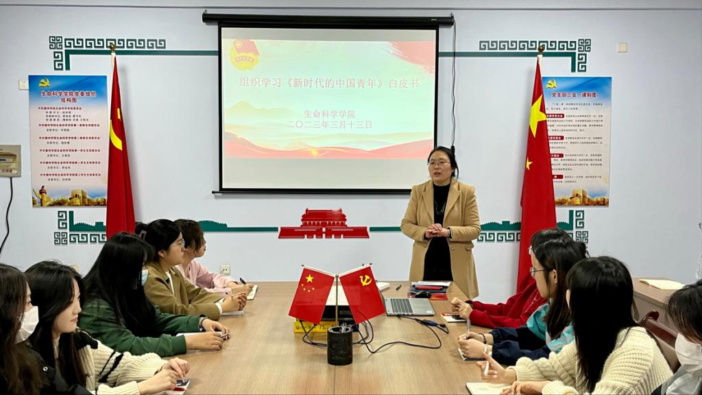 3月13日,为深入学习贯彻党的二十大精神,树立青年的崇高理想,增强青年的使命担当,ok138cn太阳集团古天乐组织团支部书记于求实楼0204学习《新时代的中国青年》白皮书,本次学习会由团委书记王艳洁主讲。