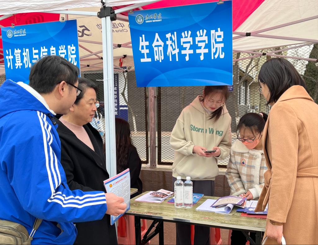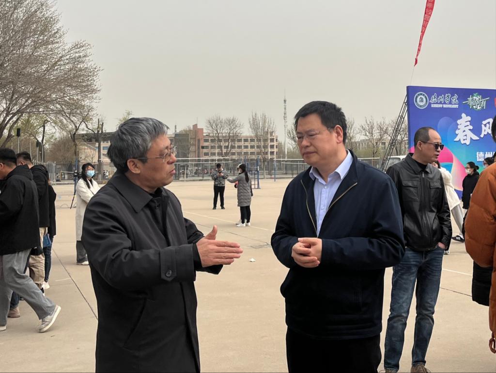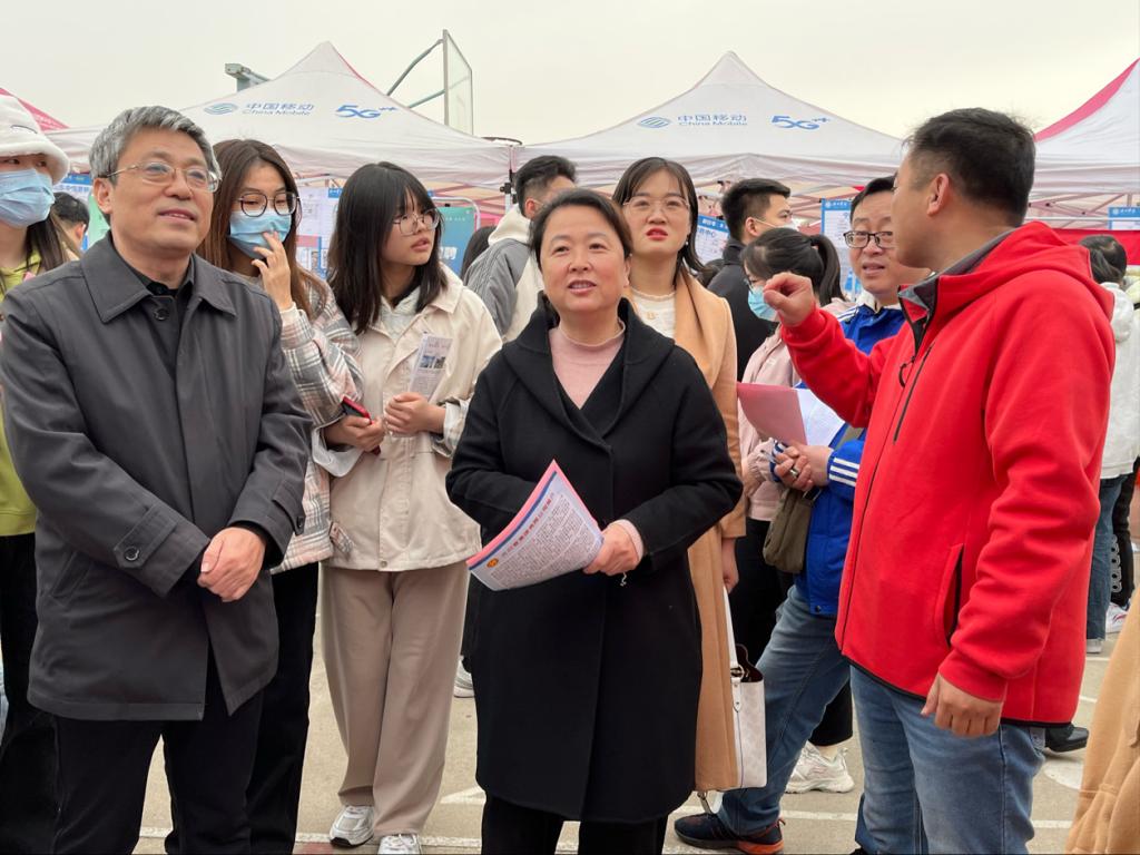3月25日上午,ok138cn太阳集团古天乐组织我院2023届应届毕业生积极参加春季校园招聘会,学院党委书记赵庆福、党委副书记夏书珍、辅导员周向军、孙珍辉深入招聘现场,助力毕业生和用人单位双向选择。本次招聘会现场共有300余家行业名企参加,共提供教育、科技、医药研发、食品应用等3000余个岗位。