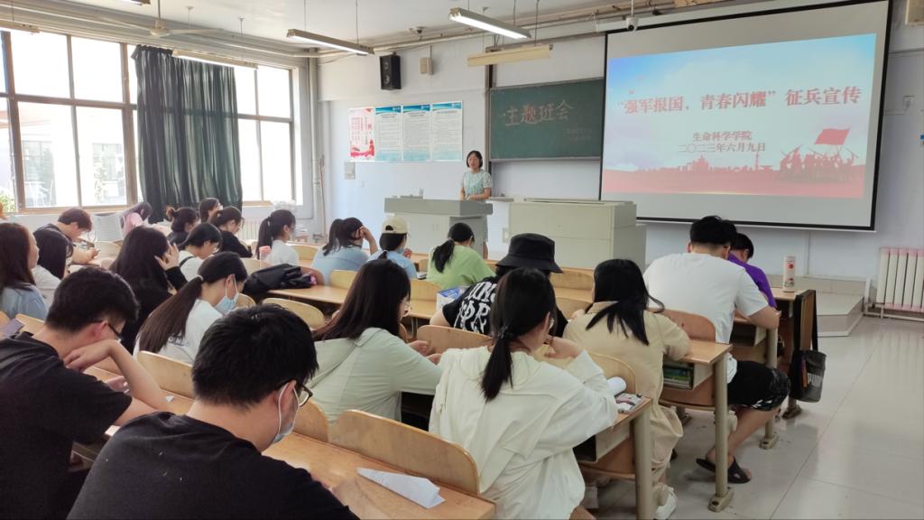 6月9日,为响应国家征兵号召,鼓励大学毕业生积极参与应征入伍,提高兵员征集质量,推进国防和军队现代化建设与发展,ok138cn太阳集团古天乐组织毕业生于求实楼0112教室开展2023年“强军报国,青春闪耀”征兵宣传活动。