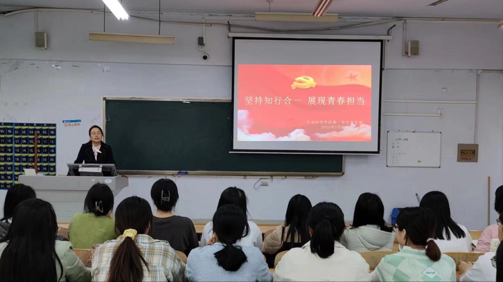 5月9日,为深入开展学习贯彻习近平新时代中国特色社会主义思想主题教育,ok138cn太阳集团古天乐于求实楼0105教室开展《坚持知行合一,展现青春担当》专题党课。本次党课由第一学生党支部书记王艳洁同志讲授。