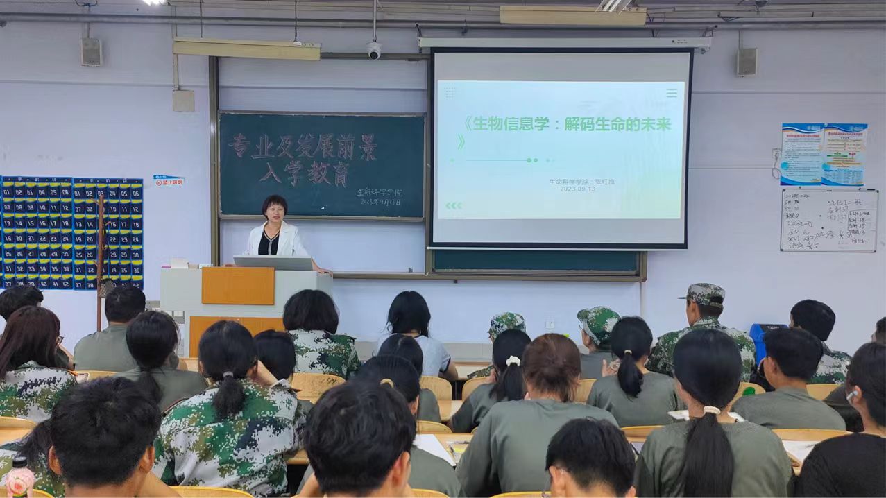 9月13日晚,我院生物信息学专业系主任张红梅于求实楼0116教室,为2023级新生开展入学教育。