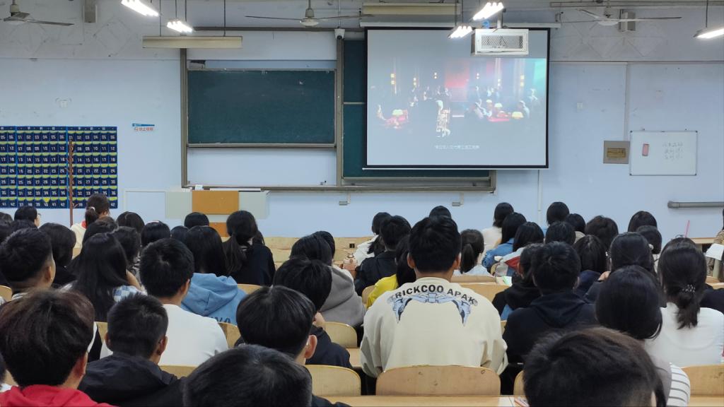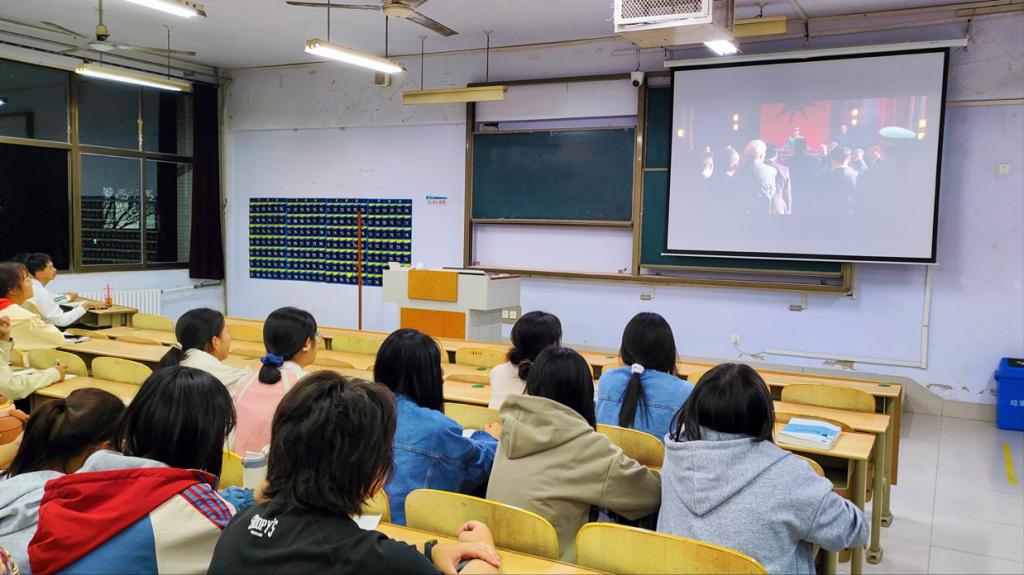 10月12日晚,ok138cn太阳集团古天乐于求实楼0118教室组织2023级全体学生集中观看电影《建党伟业》。