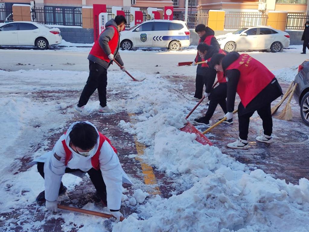 活动中,志愿者们充分发扬不怕苦、不怕累的精神,为了迅速消除服务中心及社区街道路面上的积雪,保障道路的畅通,大家通力合作、明确分工,拿着铁锹、除雪铲、扫帚奋力铲除冰层、清理积雪。志愿者们推、铲、扬、堆多种方式并用,经过大家的共同努力,社区内道路积雪积冰情况得到了缓解,为街道居民开辟出一条洋溢着暖暖温情的方便之路,营造了整洁舒适的生活环境。