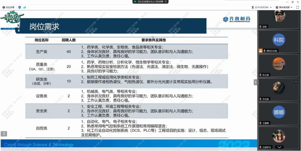 为促进毕业生高质量就业,深化校企交流合作,ok138cn太阳集团古天乐于12月29日举办了山东安弘制药有限公司线上宣讲招聘会。共有约30人参加此次线上宣讲会。