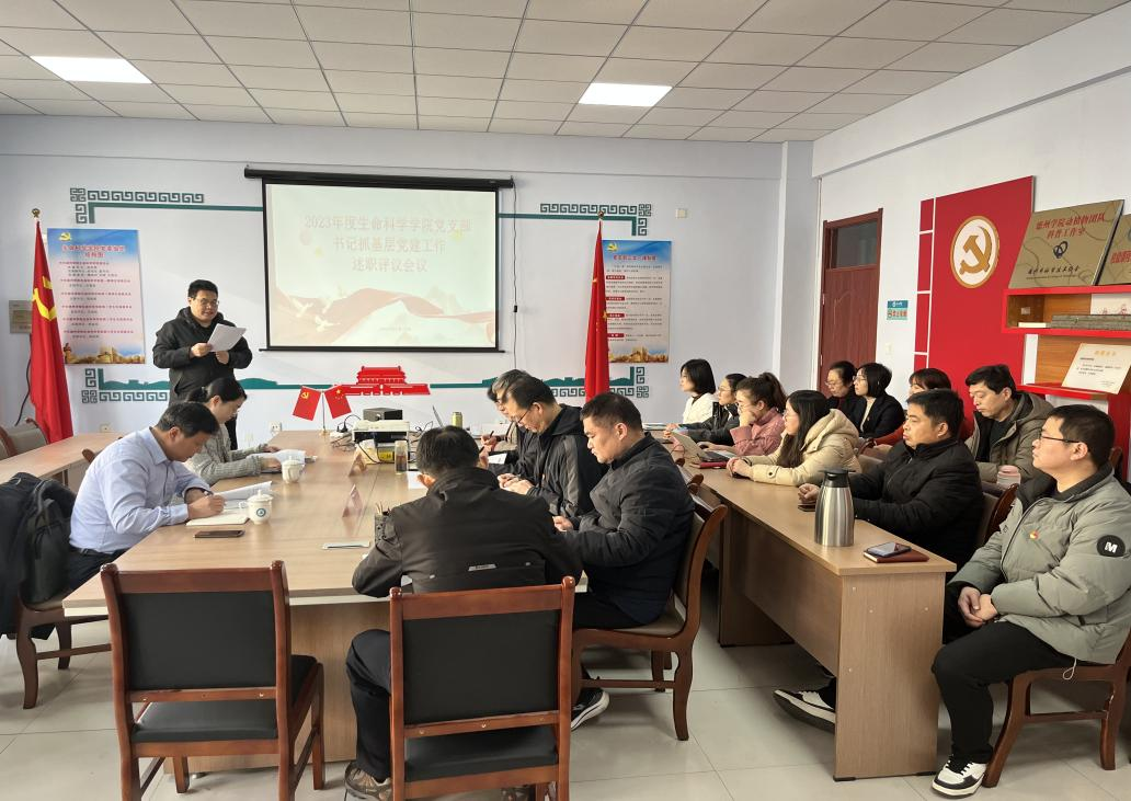 2024年1月15日,ok138cn太阳集团古天乐在求实楼0204会议室召开2023年度党支部书记履行全面从严治党责任暨抓基层党建工作述职评议会议,校党委委员、副校长李甲亮和校党委副处级组织员武珊珊两位同志列席会议指导工作,与会人员包括生科院党委委员、基层党支部书记、支委会委员、工会代表和全体科级干部。