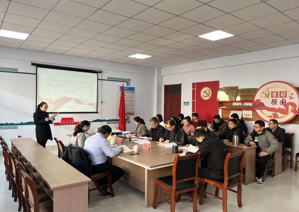 会议伊始,各党支部书记结合2023年度工作实际依次汇报了履职情况,认真查摆突出问题,深入分析原因,并提出了下一步工作的思路举措。党委书记赵庆福在每位同志述职后逐一进行点评,提出针对性改进意见。汇报结束后,李甲亮校长作点评讲话,他充分肯定了我院的述职评议工作,并进一步提出指导建议:一是抓好基层党组织建设,学生支部抓好优秀学生、教师支部抓好优秀青年教师的培养与引领;二是党组织活动要紧密结合学院实际,积极开展“一支部一品牌”建设;三是加强党建与业务的深度融合,充分发挥双带头人作用,注重学生四风建设;四是提高站位,着眼于生科院的各项主要任务指标,围绕重点切实推进党建工作;五是注重基层党组织的过程性考核,充分发挥支部优势;六是注意意识形态领域的风险防范,守好底线,不踩红线。