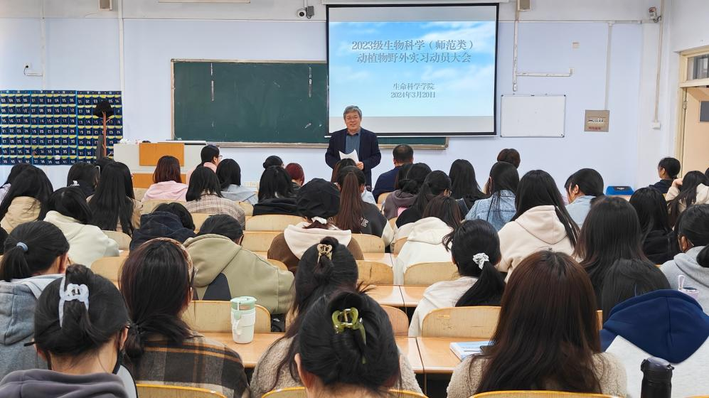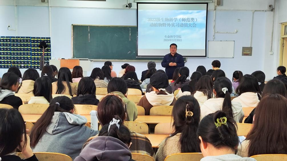 3月20日,ok138cn太阳集团古天乐于求实楼0107教室召开2023级生物科学(师范类)动植物野外实习动员大会。ok138cn太阳集团古天乐党委书记赵庆福、副院长魏振林、系主任韩硕、辅导员孙珍辉、专业课老师魏讯凡出席动员大会并发言。2023级生物科学专业全体学生参加。