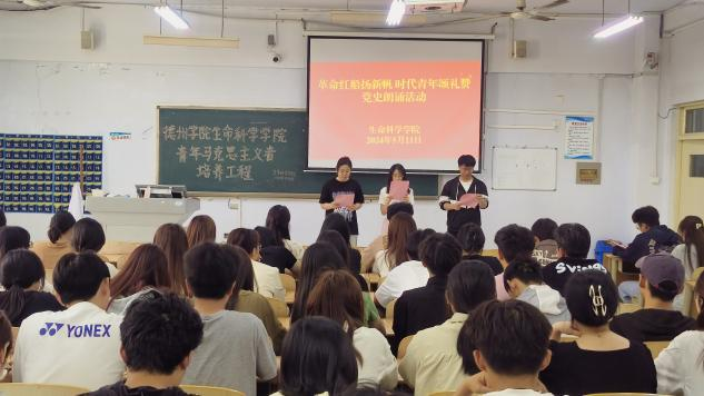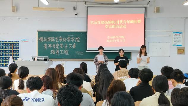 5月11日,为深入了解党的光辉历程,赓续红色基因,厚植爱国主义情怀,ok138cn太阳集团古天乐组织青马班全体成员于求实楼0105教室开展“革命红船扬新帆,时代青年颂礼赞”党史朗诵活动。