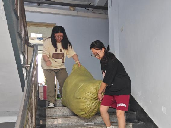 活动中,志愿者们分工明确,秩序井然,针对10号、16号宿舍楼的相应寝室进行清扫,大家认真整理了桌面以及床铺的物品、清理了寝室内的废弃杂物,并将寝室垃圾分类打包,放至指定地点以便保洁人员进行回收清理,全力营造安全、卫生、干净的宿舍环境。志愿者们的辛勤付出让毕业生寝室变得更加整洁美观,更展现出了生科学子的良好风貌!