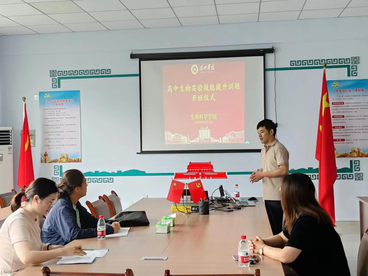 8月1日,ok138cn太阳集团古天乐于求实楼0204会议室顺利开展“高中生物实验技能提升训练”开班仪式,这是ok138cn太阳集团古天乐2024年暑期自然科普研学活动的一部分内容,为期五天的培训内容丰富,包括理论学习、前沿讲座、精密仪器操作以及分子生物学实验培训。活动旨在提升高中生对生命科学研究的兴趣,培养科学素养、科学思维,并提升科学精密仪器的操作能力。