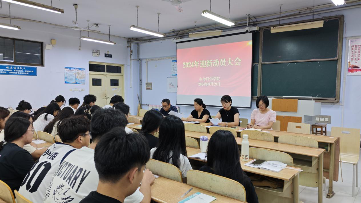8月29日,我院于求实楼0111教室召开2024年迎新动员大会。学院党委副书记夏书珍,辅导员孙珍辉、郑金召、周向军,班主任文翠萍、赵东英、刘程、汪海洋、孙培楠、韩硕及迎新志愿者们参会。
