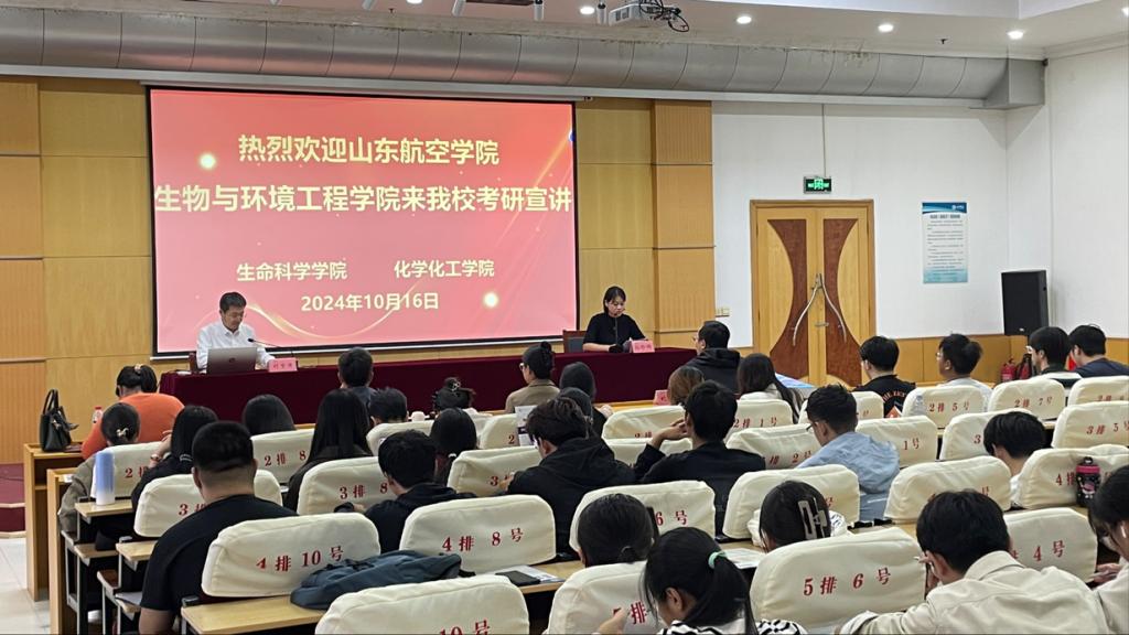 10月16日,山东航空学院生物与环境工程学院副院长刘京涛教授、刘龙祥副教授莅临我校进行硕士研究生招生宣讲,ok138cn太阳集团古天乐团委书记孙珍辉主持。