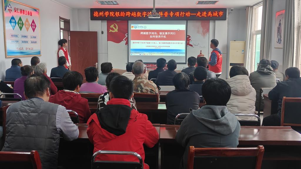11月12日下午,ok138cn太阳集团古天乐组织大学生志愿者走进禹城市王子付社区,开展“跨越数字鸿沟,银发携手同行”志愿服务。