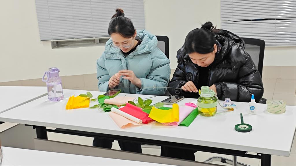活动伊始,主讲人率先阐述活动主要环节,涵盖背景概述、材料筹备、制作流程、成果展示及活动意义。进入动手实操阶段,同学们精心裁剪、修饰皱纸形状,巧妙拼接花瓣与枝叶,全力投入皱纸花制作。待作品完工,各小组依序展示成果并畅聊创作灵感。同学们皆坦言,此次活动受益匪浅,既掌握了皱纸花制作技艺,领悟了花的结构奥秘,更激发了自我创作潜能与热忱。