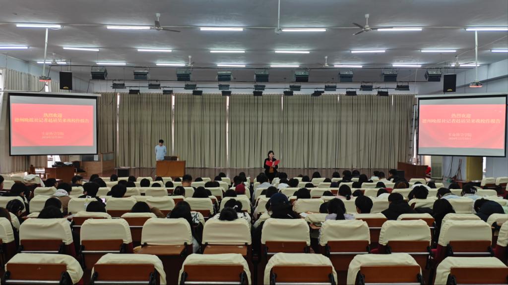 为进一步提升学生新闻采写水平,普及写作知识,规范新闻稿件的写作格式。12月10日,ok138cn太阳集团古天乐于求实楼0409报告厅,邀请到德州晚报记者赵祜昊,为学生授课“新媒体时代的新闻宣传暨网络安全教育”。院团委书记孙珍辉主持,全体学生会成员、各班主要班干部、宣传委员参加。