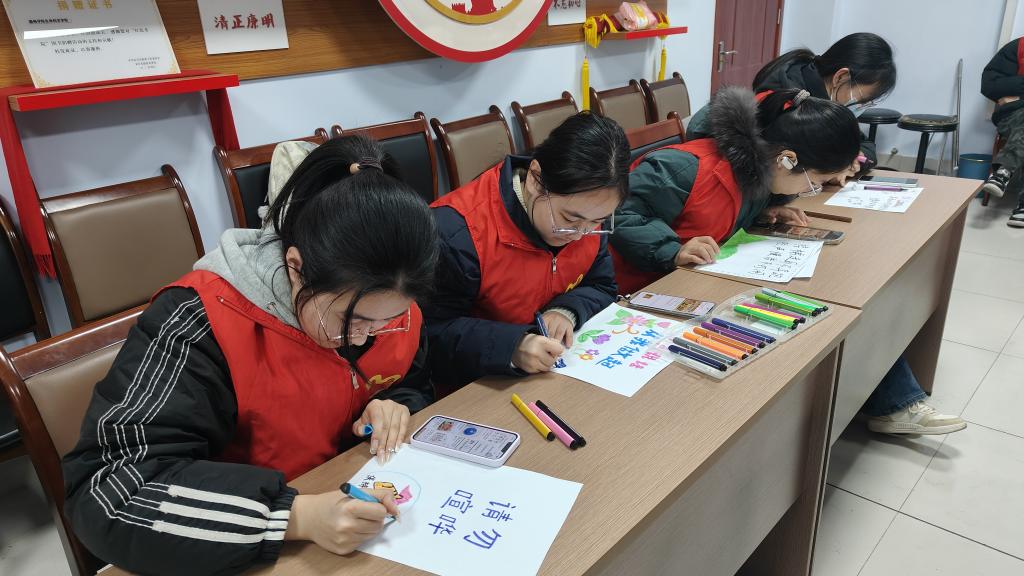 活动中,志愿者们通过播放视频的形式,生动地向同学们展示了此次活动的意义与具体目标。他们积极引导同学们遵守校园文明公约,从自身做起,不高声谈话,不制造任何可能打扰他人学习的噪音,为考研学子创造一个宁静的学习环境。随后,同学们纷纷拿起彩笔,专注地设计着文明标语。有的同学眉头紧锁,深思熟虑,力求用最简洁有力的语言传达出文明静音的重要性;有的则轻声讨论,互相启发,共同探寻更富有感染力的表达方式。随着一幅幅标语的完成,教室内的气氛愈发活跃。同学们纷纷表示,这些标语不仅是对考研学子的鼓励和支持,更是对自己文明行为的鞭策和提醒。他们承诺将积极践行这些文明标语所倡导的精神,共同营造和谐、宁静、文明的校园环境。