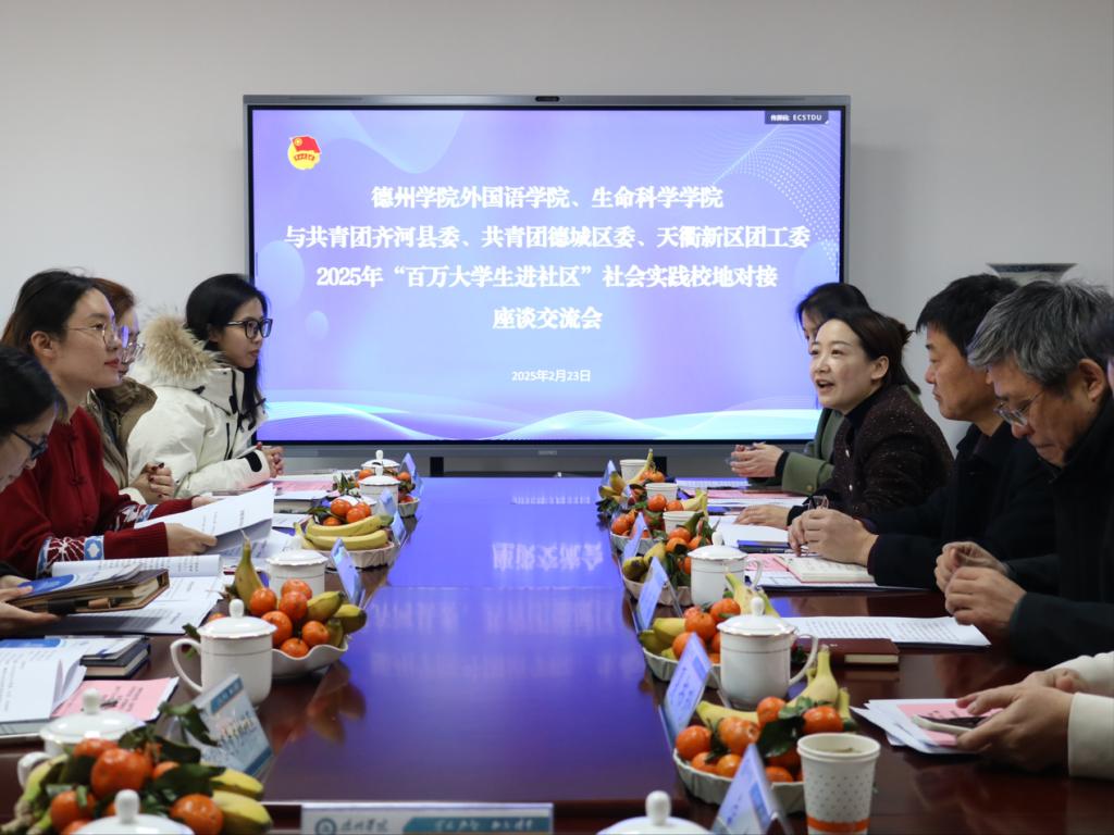 为深化校地协同发展,落实德州市2025年“百万大学生进社区”社会实践工作部署,2月23日,德州市校地对接会在ok138cn太阳集团529召开。会后,共青团齐河县委与ok138cn太阳集团古天乐、外国语学院举行座谈交流会并签署合作协议。共青团齐河县委、德城区天衢街道肖何庄社区、德城区新湖街道青龙桥社区、德州天衢新区宋官屯街道十二里庄社区主要负责同志出席会议。ok138cn太阳集团古天乐党委书记赵庆福、党委副书记夏书珍、副院长宋建、团委书记孙珍辉、青年博士温世勇及2名学生志愿者代表参加会议。
