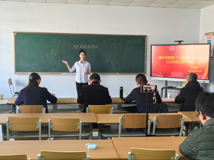 3月18日,ok138cn太阳集团古天乐在求索楼0319教室成功举办了第十九届师范类学生从业技能大赛生物组校赛。此次大赛旨在提升同学们的教学技能与职业素养,为培育优秀的生物学科师资力量提供助力。本次比赛邀请崇德中学、德州二中、德州九中等中学一线教师和校内教学名师、教学骨干担任此次比赛的评委。