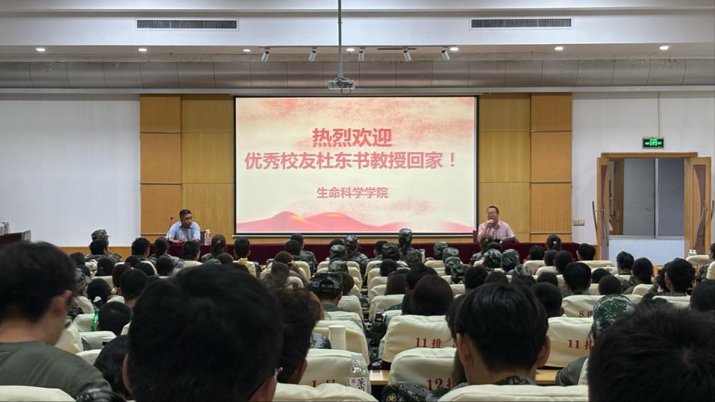 会上,他强调,生物学是实验驱动的学科,新生需“打下扎实专业基础”,将理论知识学深悟透;同时要“重视实验学习”,主动参与实验室实践,在操作中培养观察、分析和解决问题的能力,做到理论与实践并行。同时,杜教授鼓励新生做好学业规划,明确学习目标和发展路径。此外,他结合求学期间克服困难的经历,鼓励新生“做到有自信”,以积极心态面对学习挑战,要敢于尝试新方法、新思路,在实践中锤炼创新能力。互动环节,新生们不仅围绕课程学习、考研准备等学业问题与杜教授交流,还主动提出“面对挫折该怎么办”这类成长困惑,积极向杜教授寻求解答。