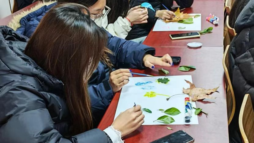 活动伊始,主讲人以“一片叶子的科学密码”为切入点,系统讲解叶脉画的起源与创作原理。从叶脉作为植物“营养运输通道”的生理结构,到不同植物叶脉的分类特征,再到叶脉画制作中“去叶肉留叶脉”的科学方法,主讲人通过实物展示与图片对比,让学子们直观理解叶脉画背后的生物学问,为后续创作奠定知识基础。在动手操作环节,同学们或参照植物细胞结构图勾勒微观世界,或结合生态主题绘制自然场景,在耐心调色与细致描绘中,将科学认知转化为生动的艺术作品。活动尾声,大家纷纷展示自己的作品,分享创作思路与收获,探讨叶脉画在生活装饰、学科实践中的多元应用。