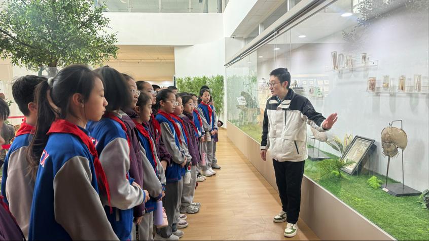 启智楼标本馆内,丰富的动植物标本有序陈列、保存完好,宛如一座“移动的自然博物馆”。启承博物社的讲解员化身亲切的“小老师”,围绕标本展开系统科普,从动植物的起源分布、演化脉络,到独特的生存特性与生态角色,用生动形象的表述层层解析。小学生们紧跟讲解节奏,不时驻足观察标本的形态特征,认真记录知识点,面对新奇的标本满眼好奇,积极参与问答互动,在近距离观察中直观感受生物多样性的神奇。带队老师全程陪伴引导,将课堂知识与场馆实景相结合,现场研学氛围浓厚,让科学教育更具实效与温度。