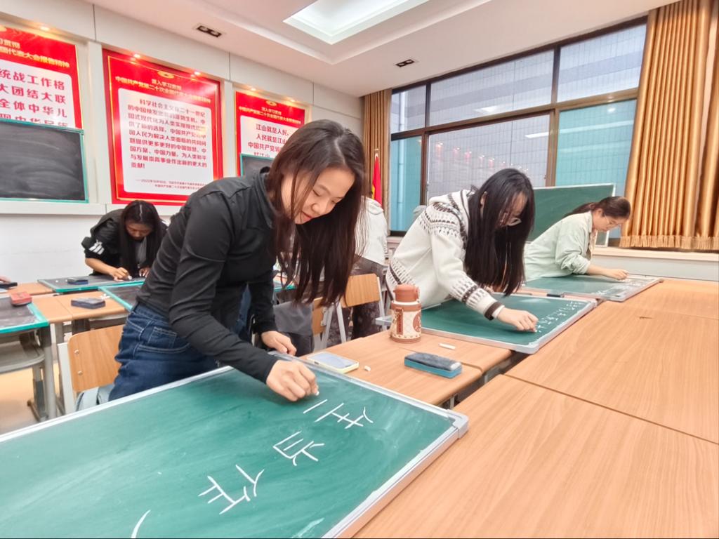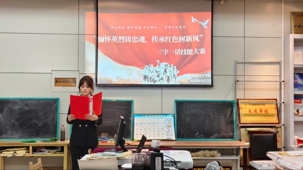 4月2日晚,清明将至,ok138cn太阳集团古天乐依托生物科学(师范类)“三字一话”课程,举办“缅怀英烈铸忠魂,传承红色树新风”技能大赛。主持人带领同学们重温革命历史、缅怀先烈功绩,感悟英烈们为国奉献的崇高精神。同学们以毛笔、钢笔、粉笔为载体,书写红色经典诗句,将对革命先烈的崇敬与缅怀凝于笔端,一笔一划尽显庄重。创作后,大家深情朗诵作品,在笔墨与诵读中接受红色精神洗礼,既锤炼了师范专业技能,更汲取了奋进力量,让革命精神融入青春血脉。本次活动将红色教育与专业训练紧密结合,有效提升了师范生的书写与表达能力,厚植了青年学子的爱国情怀与使命担当。