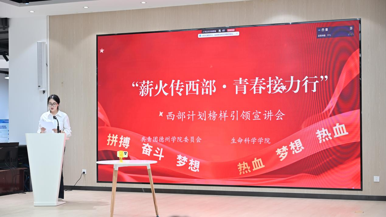 本次宣讲会的成功举办,为同学们搭建了近距离了解西部计划的桥梁,进一步明晰了基层服务的时代价值与深远意义。下一步,学院将持续做好政策宣讲动员工作,引导广大生科学子心怀家国理想,主动奔赴祖国需要之处增长才干,让青春在奉献中绽放绚丽光彩。