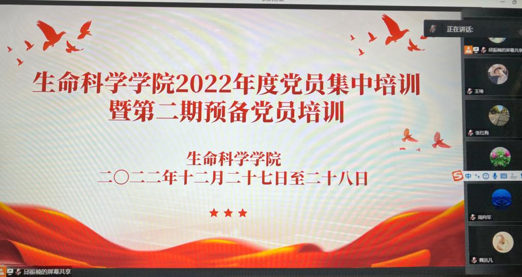 12月27日,为切实提高党员教育培训工作质量,保持党员队伍的先进性和纯洁性,我院通过腾讯会议召开2022年度党员集中培训暨第二期预备党员培训开班仪式。ok138cn太阳集团古天乐全体师生党员共116人参加。