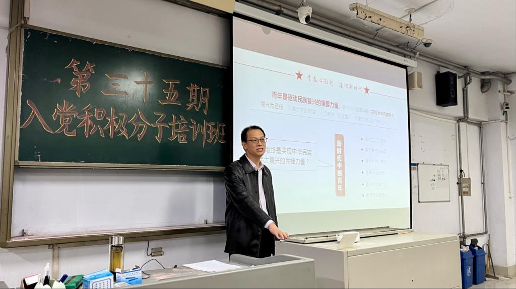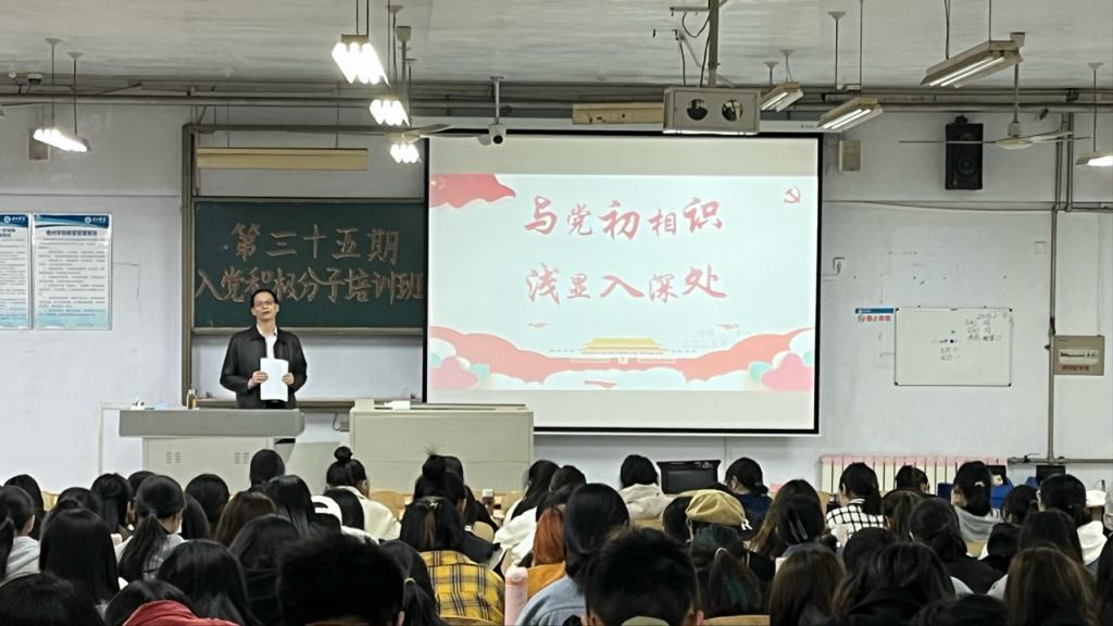 2023年4月12日,为提高入党积极分子的思想政治素养,加深入党积极分子对党的性质和宗旨的认识,ok138cn太阳集团古天乐于求实楼0112教室开展“与党初相识,浅显入深处”入党积极分子培训课。此次课程由院长曾强成主持,参训学员共127名。