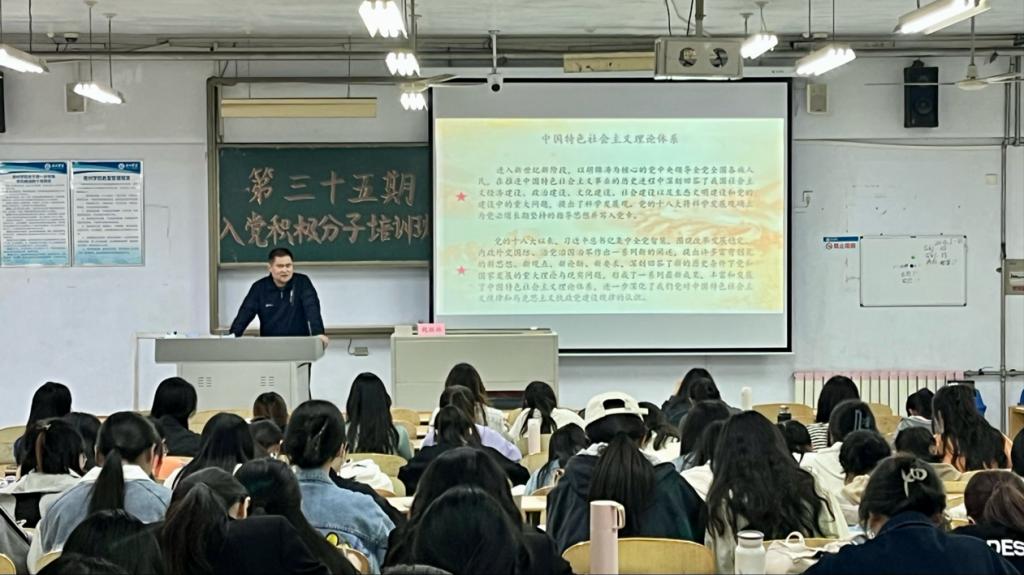 2023年4月17日,为进一步加强入党积极分子对党的认识,把牢党员发展“入口关”,ok138cn太阳集团古天乐党委委员、副院长魏振林同志于求实楼0112教室作“承前人伟绩,走中国道路”主题党课讲座。参训学员共127名。