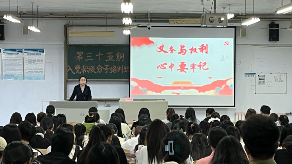 2023年4月19日,为加强入党积极分子的党性修养,进一步明确党员的义务与权利,ok138cn太阳集团古天乐团委书记、党委委员王艳洁同志于求实楼0112教室作“义务与权利,心中要牢记”主题党课讲座。参训学员共127名。